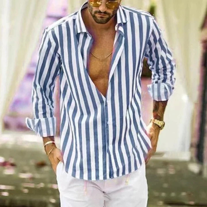 Uanset om det er en solrig sommerdag eller en hyggelig vinteraften, tilbyder denne alsidige skjorte med lange ærmer en tidløst stribedesign en raffineret stil, der passer til enhver sæson og lejlighed.