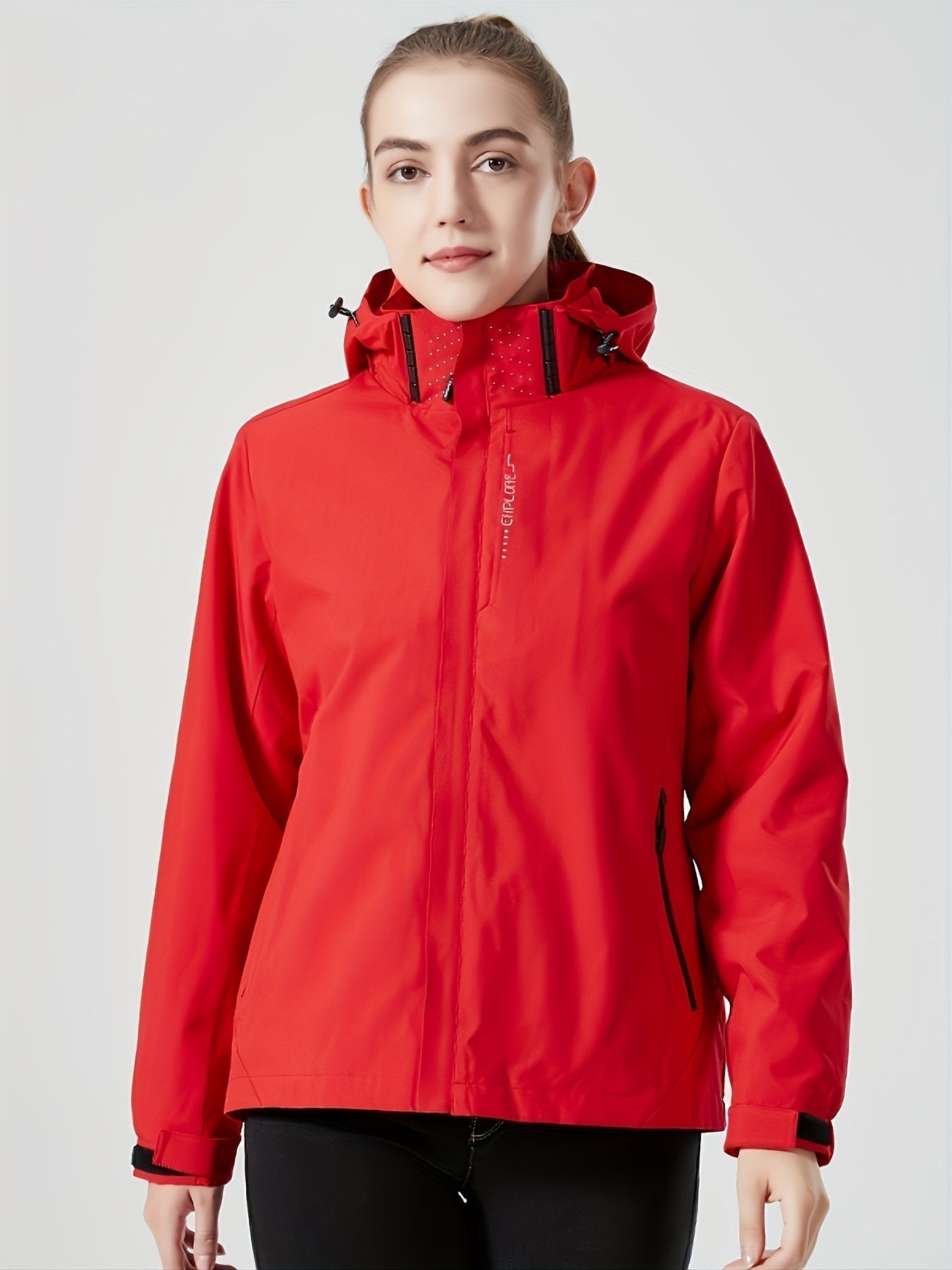 Denne vandtætte damejakke er designet til at beskytte mod regn og vind med en behagelig pasform og hætte. Fås i flere farver som rød, sort, hvid og lyseblå, og jakken er ideel til daglig brug i vådt vejr.