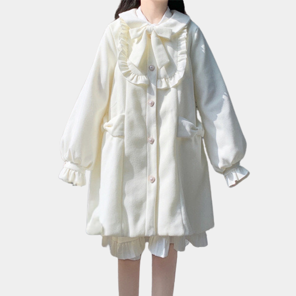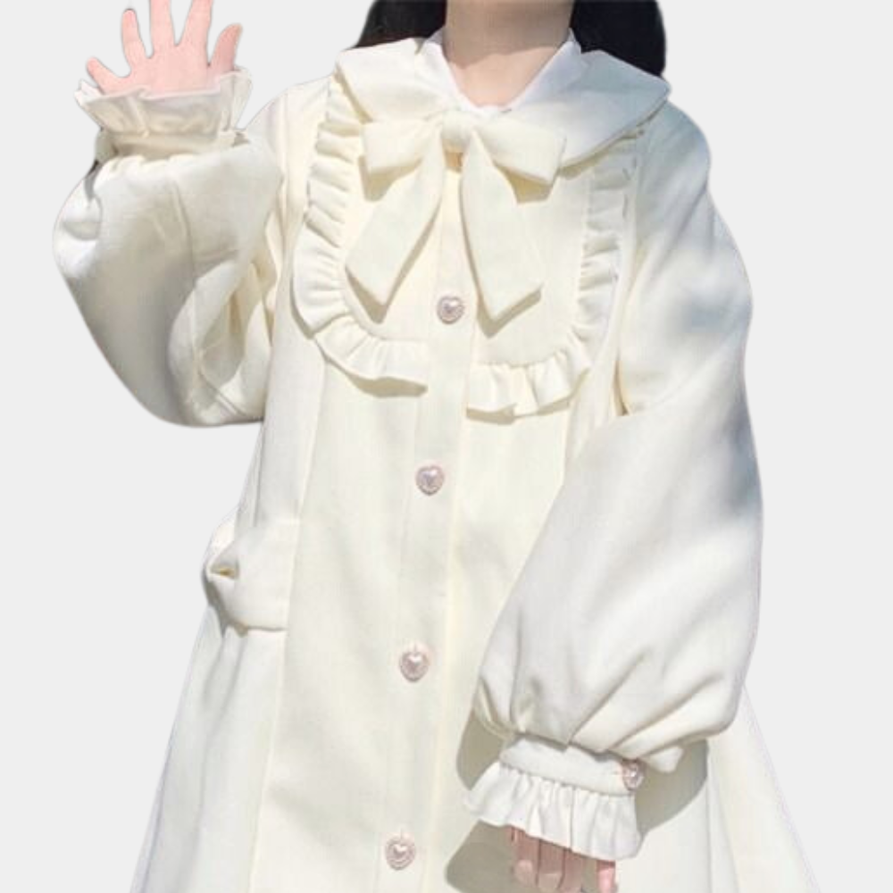 Hold dig varm og stilfuld denne vinter med denne søde frakke, der er designet med et blødt, varmt bånd, som tilføjer et feminint og hyggeligt touch til dit look.