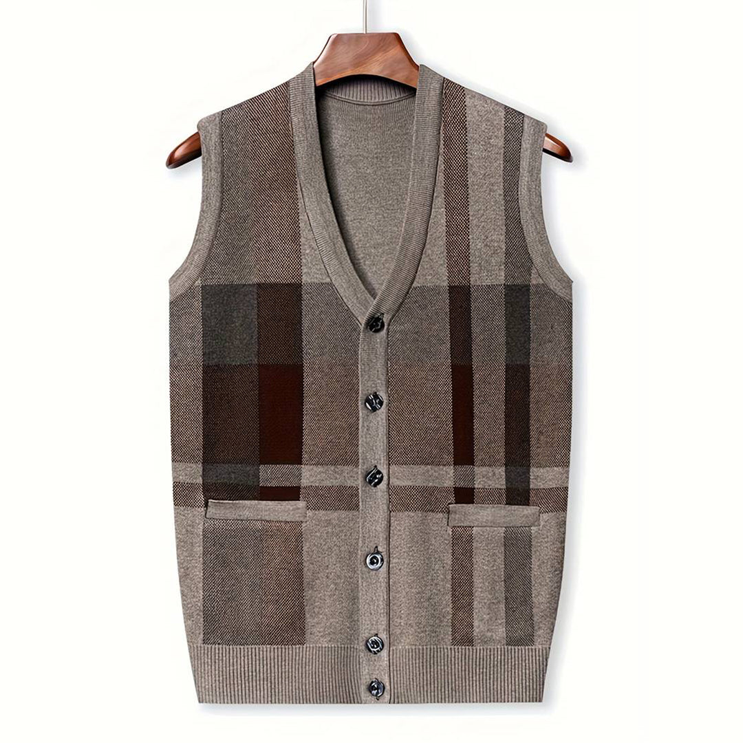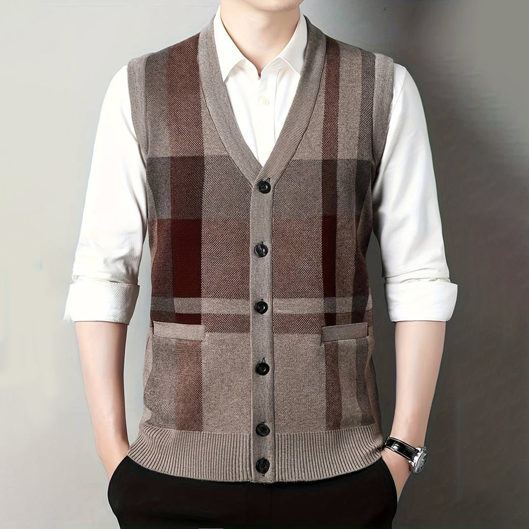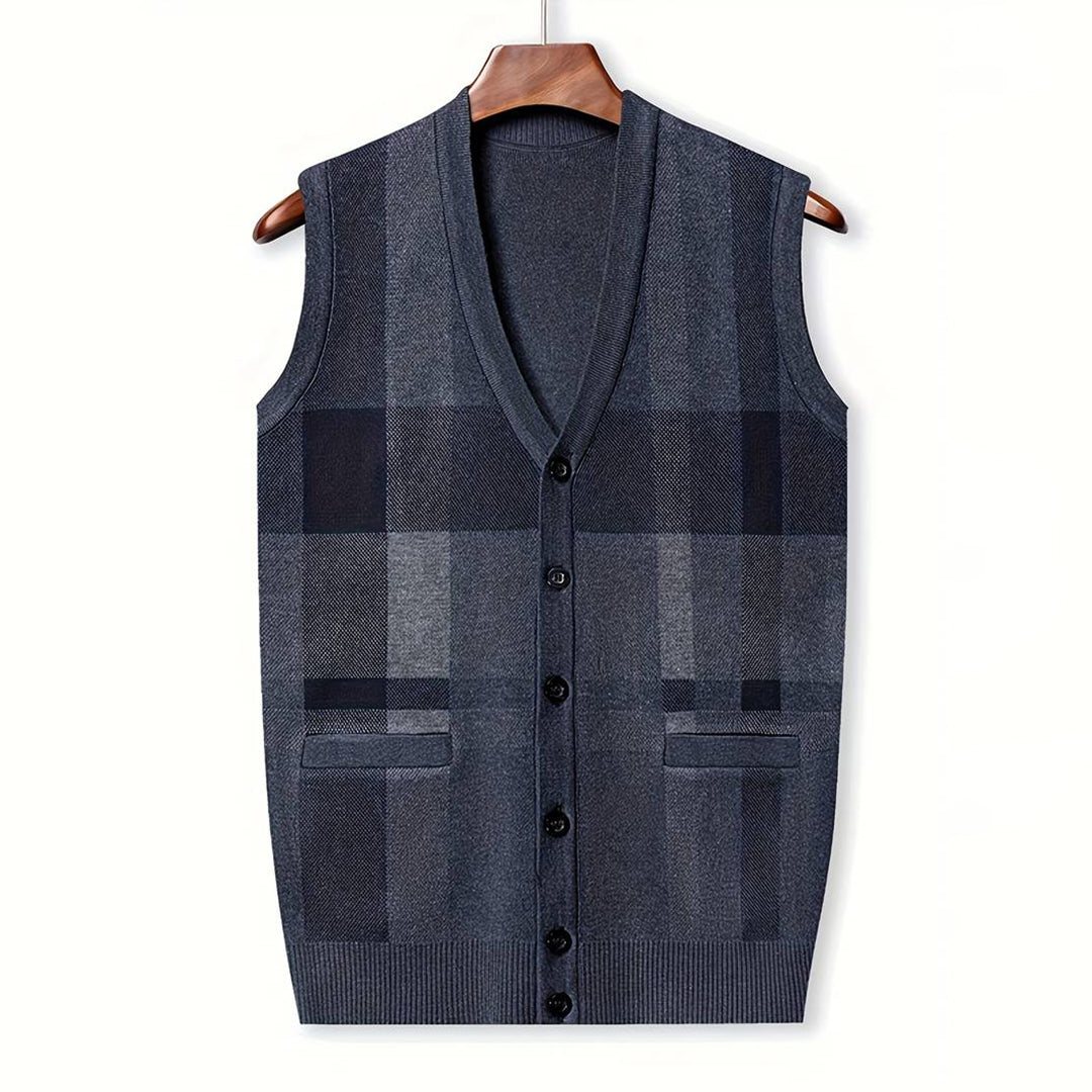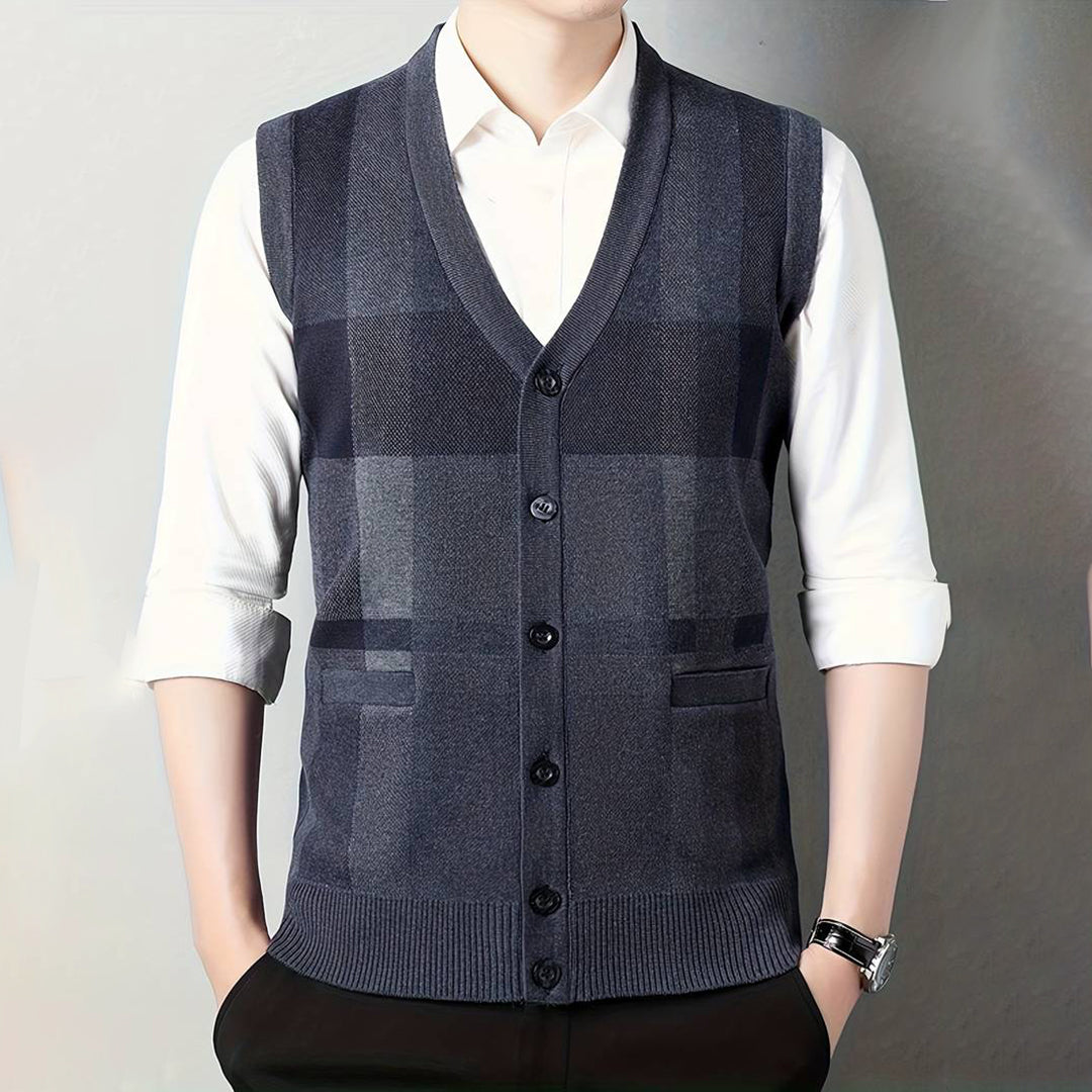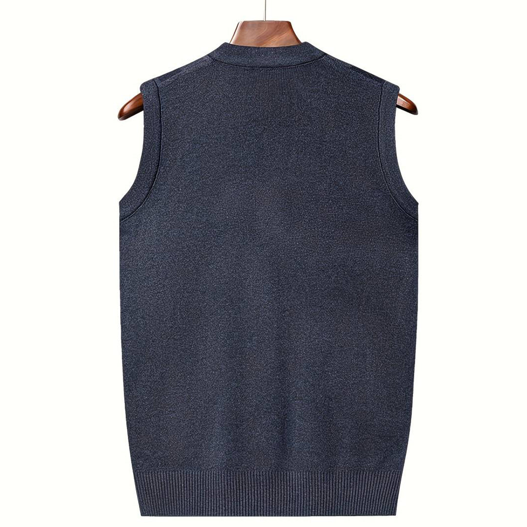 Skil dig ud med denne ubesværede, cool Stilfulde vest til mænd. Denne stilfulde, ærmeløse vest bliver hurtigt dit nye favoritlag til efterår og vinter. Med en v-hals og knaplukning tilføjer den et strejf af elegance. Lavet af et blødt, strækbart strikmateriale, der bevæger sig med dig. Den slanke, ærmeløse stil er perfekt til lag-på-lag over skjorter eller T-shirts og har to lommer foran for en praktisk, funktionel finish.