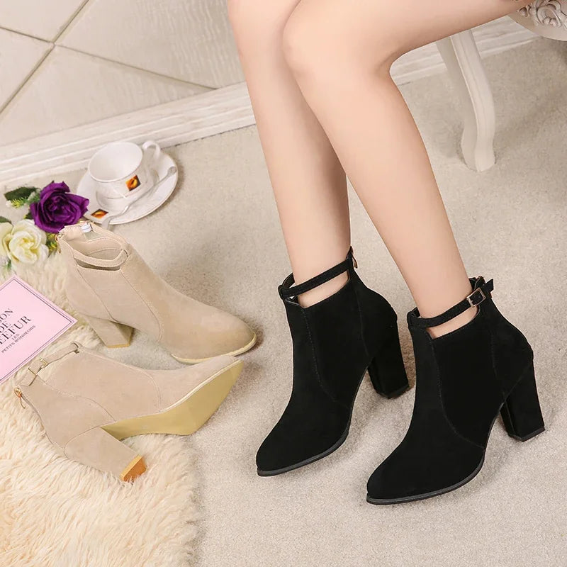 Moderne ankelstøvler med høj hæl og lynlås til kvinder