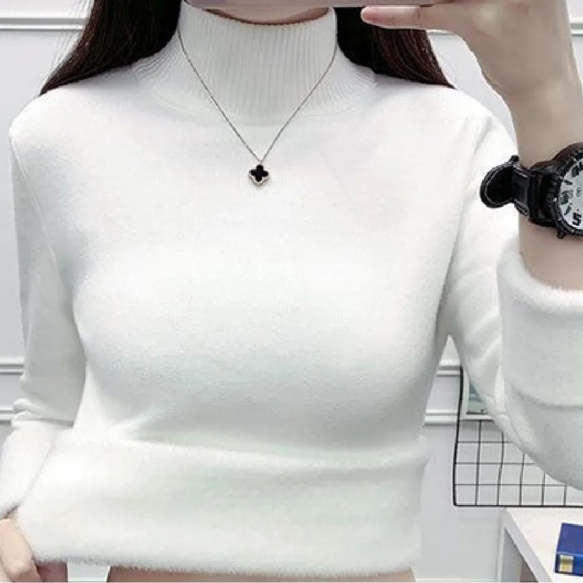 Oplev den ultimative vinterkomfort med Strikket sweater med fløjlspasform. Denne trøje er lavet til kvinder, der ønsker at kombinere stil og varme. Takket være den behagelige pasform og det varme design vil Strikket sweater med fløjlspasform forblive din foretrukne beklædningsgenstand i de kolde måneder. Perfekt til både hjemme og ude.