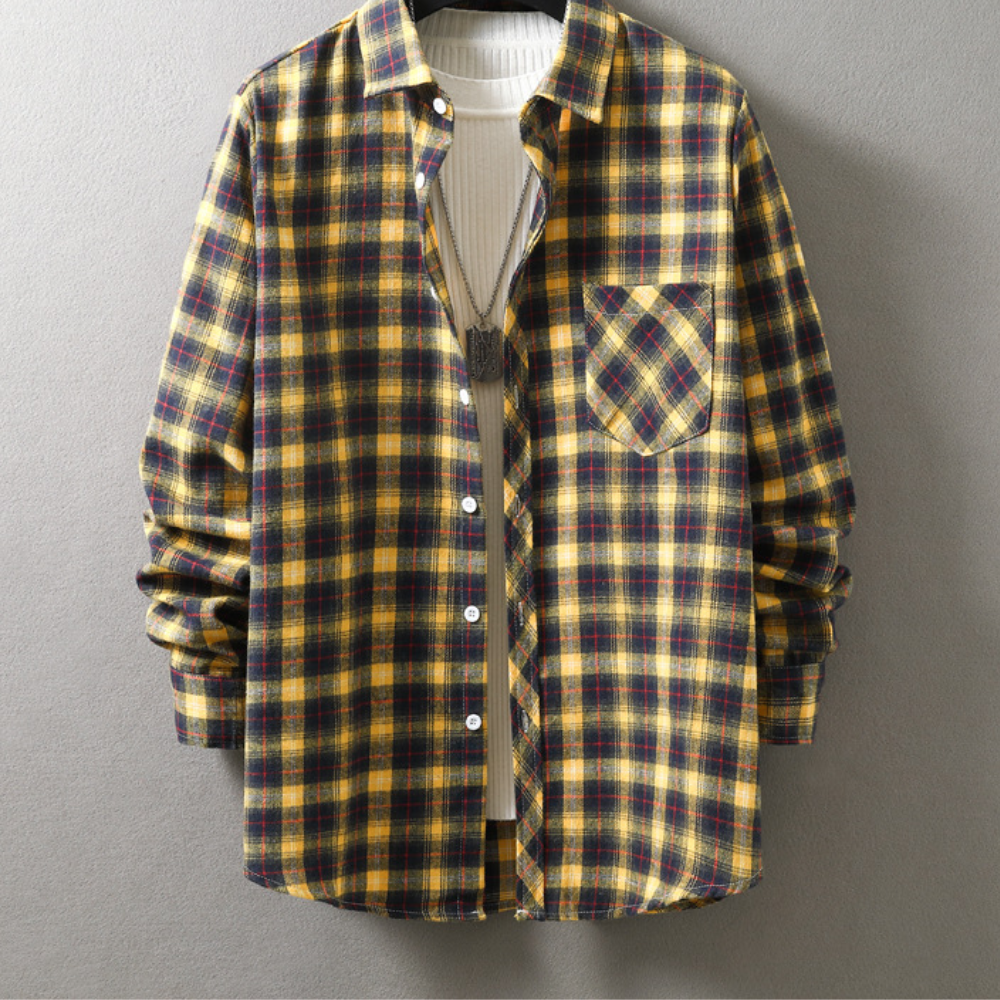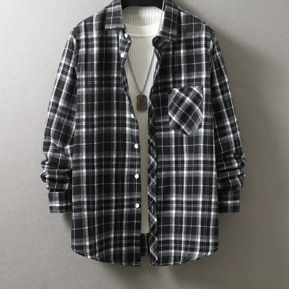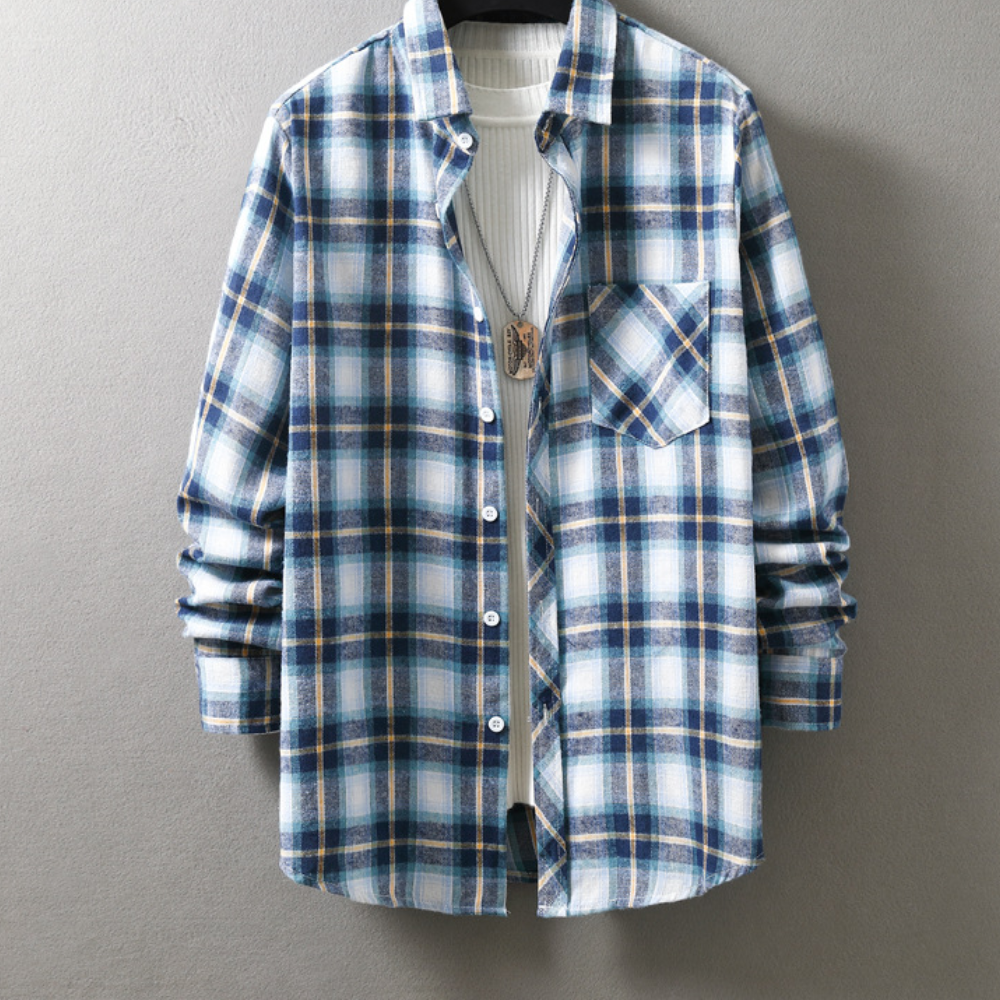 Klassisk mønster, naturlig komfort. Denne ternede langærmede bomuldspolo til mænd forener tidløs herremode med høj komfort i blødt, åndbart bomuldsstof. Det elegante ternede mønster tilfører karakter uden at være prangende, mens de lange ærmer gør den ideel til sæsonskifte og køligere dage.