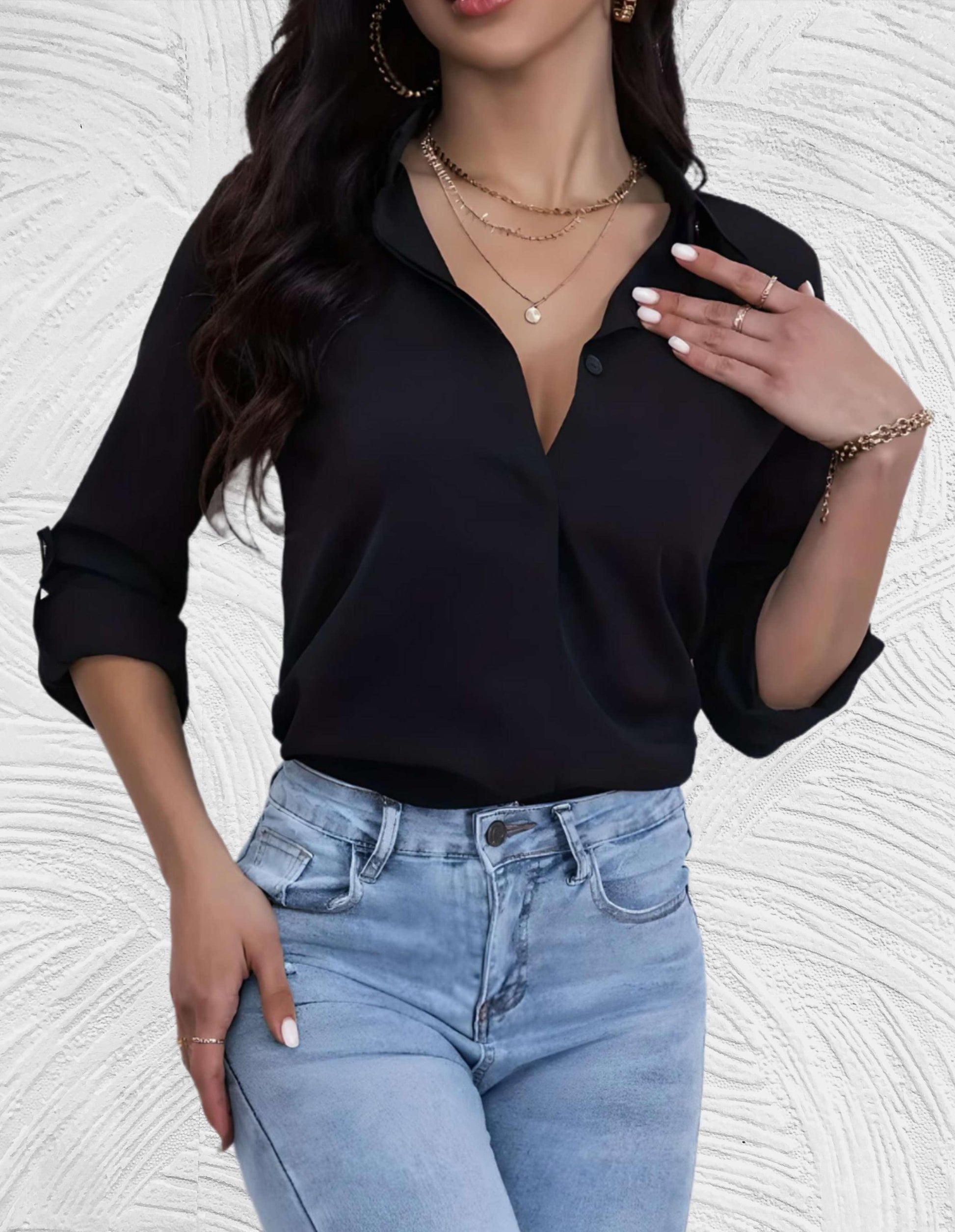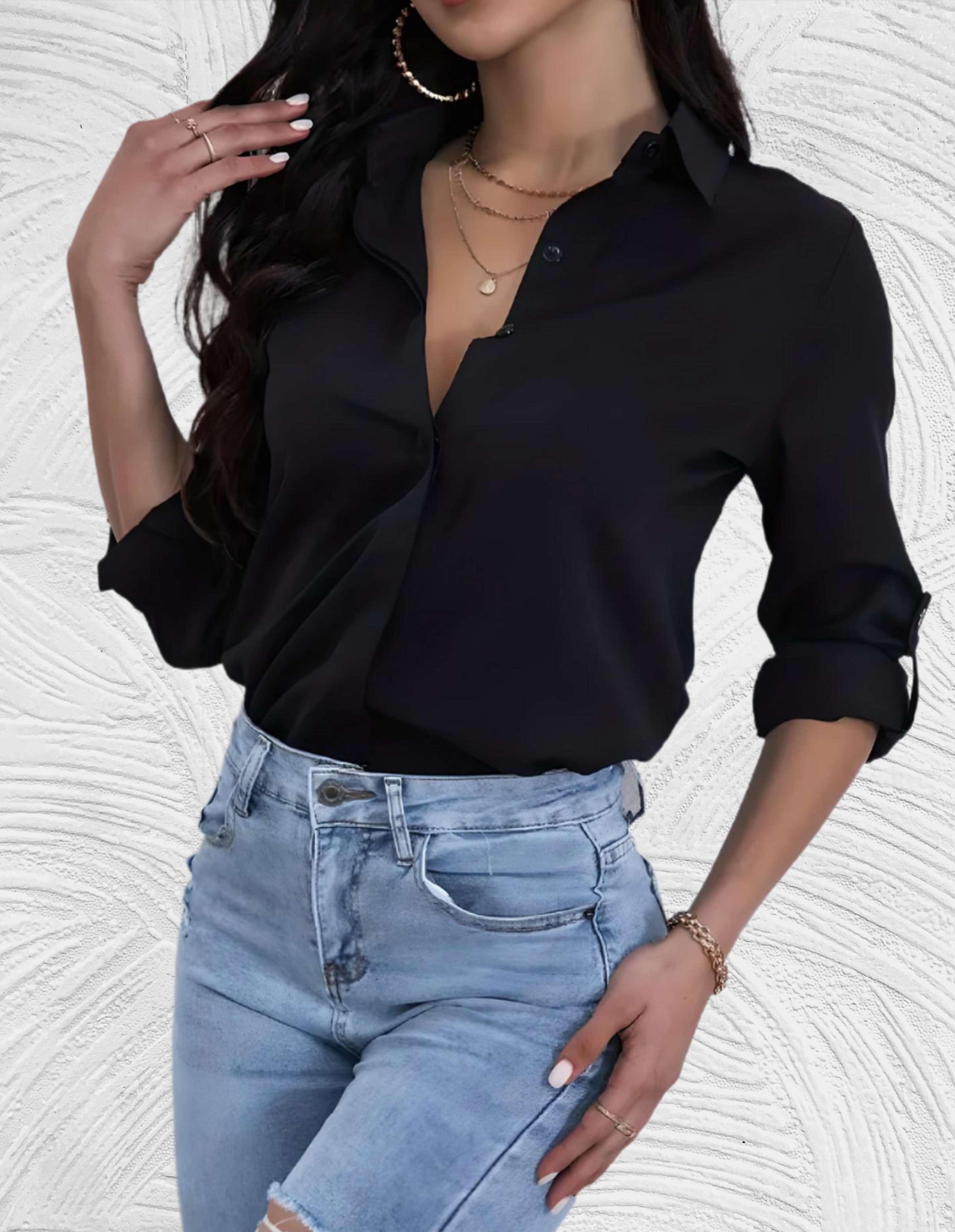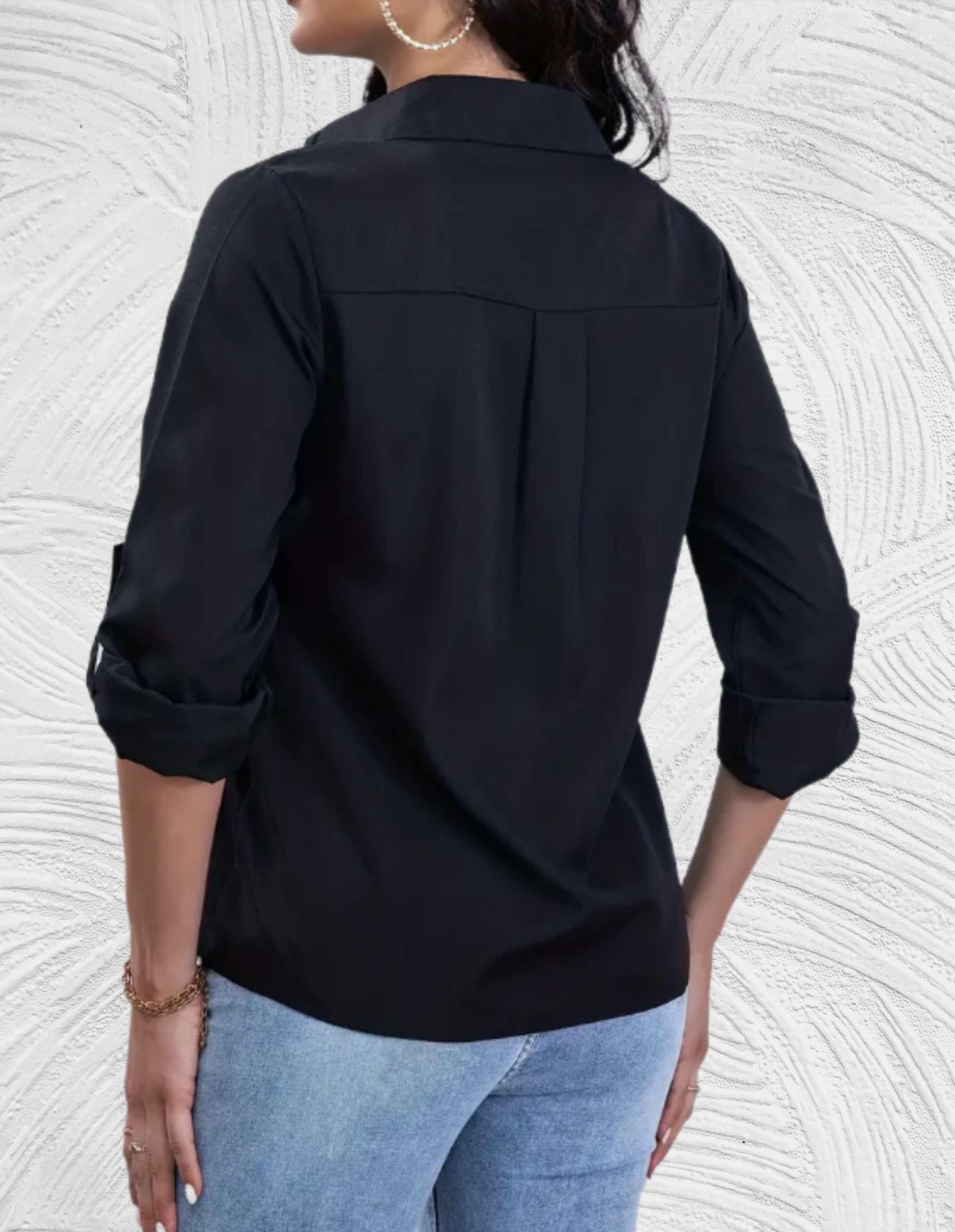 Moderne, tidløst og alsidigt. Denne bluse er ikke kun praktisk, men også en modeerklæring, der udstråler stil og elegance.
