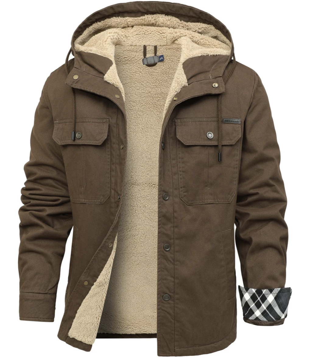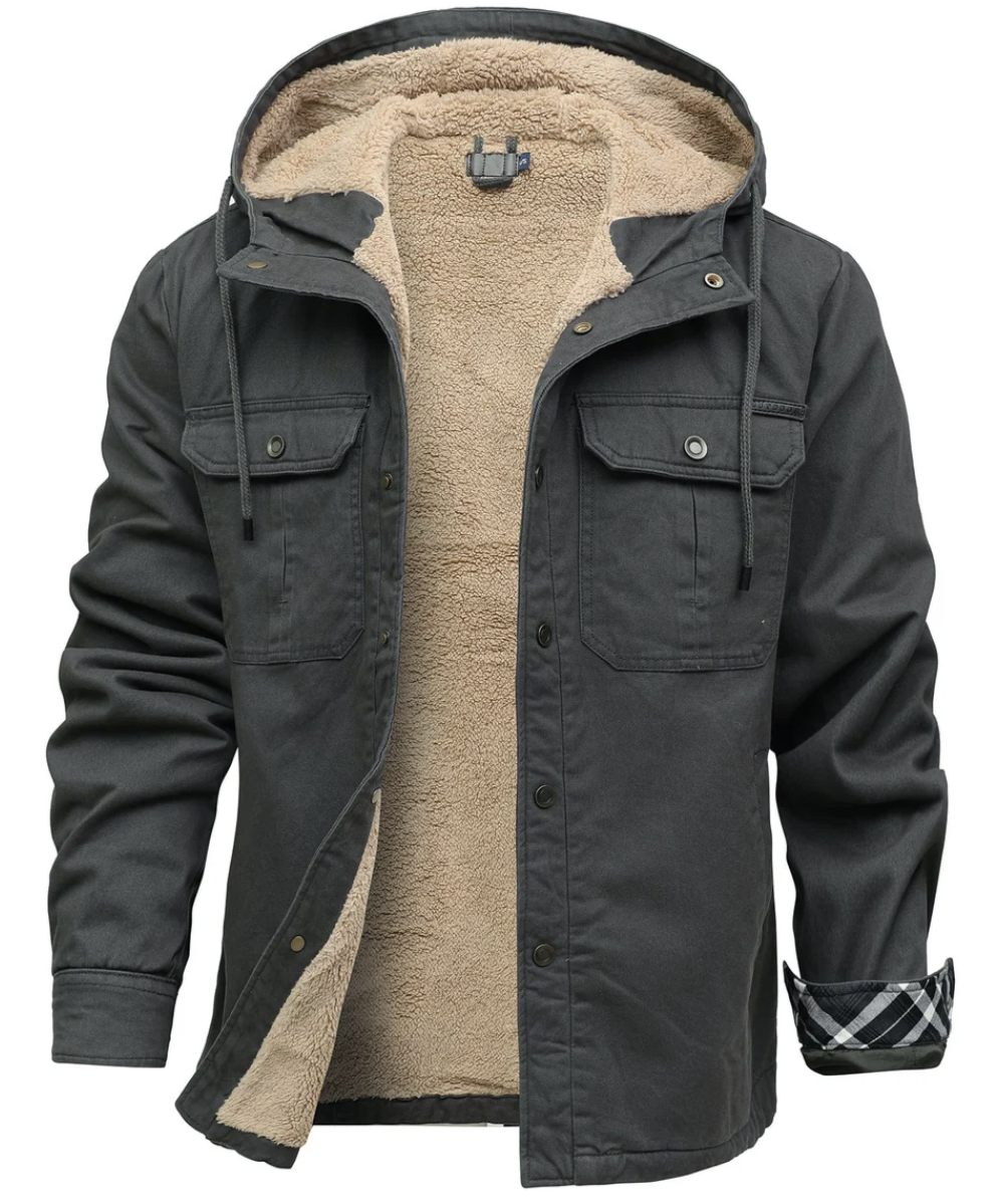 Denne tykke fleecejakke med hætte er din perfekte ledsager til de kolde måneder, hvor både komfort og stil er vigtige. Gå vinteren i møde med denne uundværlige jakke!