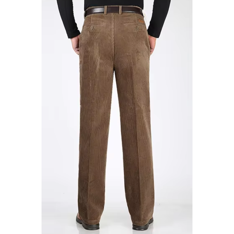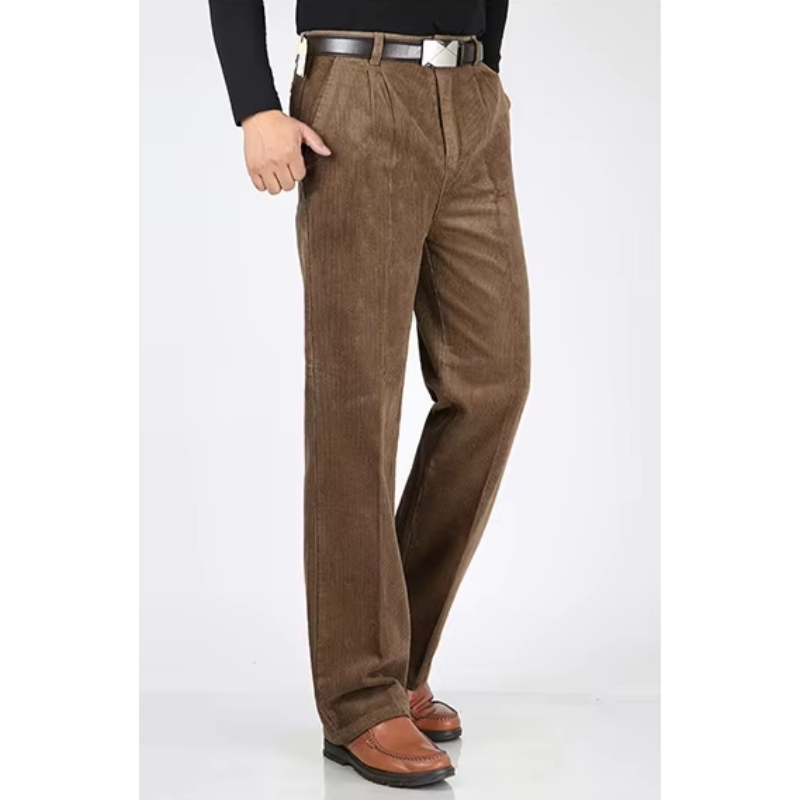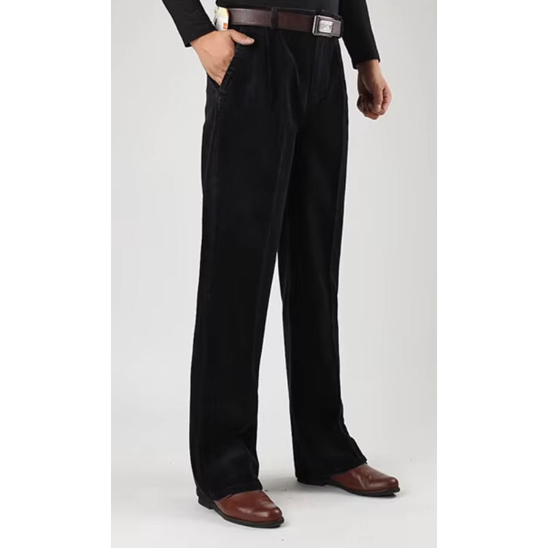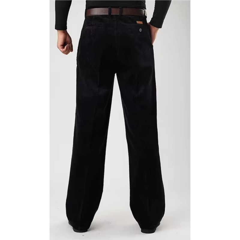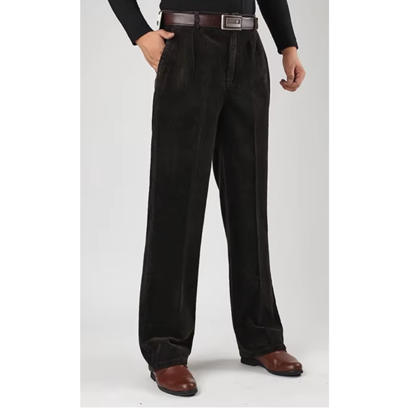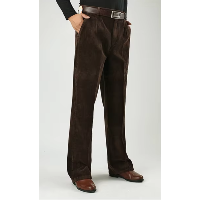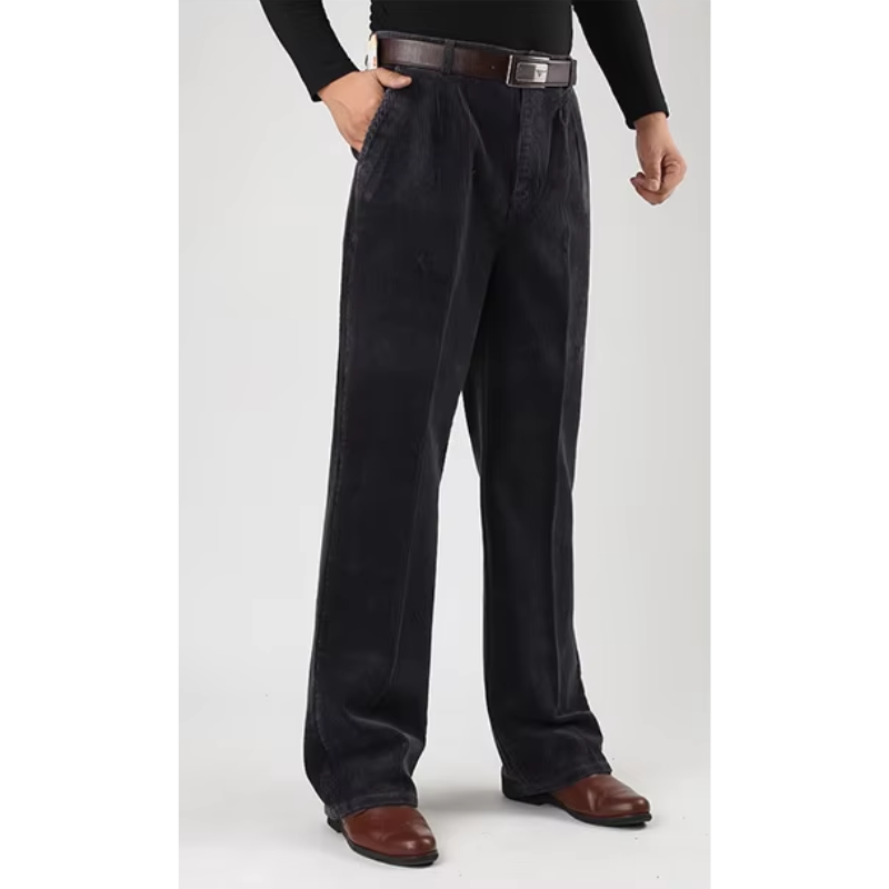 Disse brede fløjlsbukser er en tidløs tilføjelse til garderoben for den moderne mand. Med en afslappet, men skræddersyet pasform giver bukserne en ubesværet elegance, der både er komfortabel og stilfuld. Lavet af førsteklasses fløjl har bukserne en blød tekstur og en subtil glans, der løfter dit daglige outfit til et højere niveau. Uanset om det er til en afslappet dag ude eller en sofistikeret kontorstil, sikrer disse bukser, at du altid ser velklædt ud.