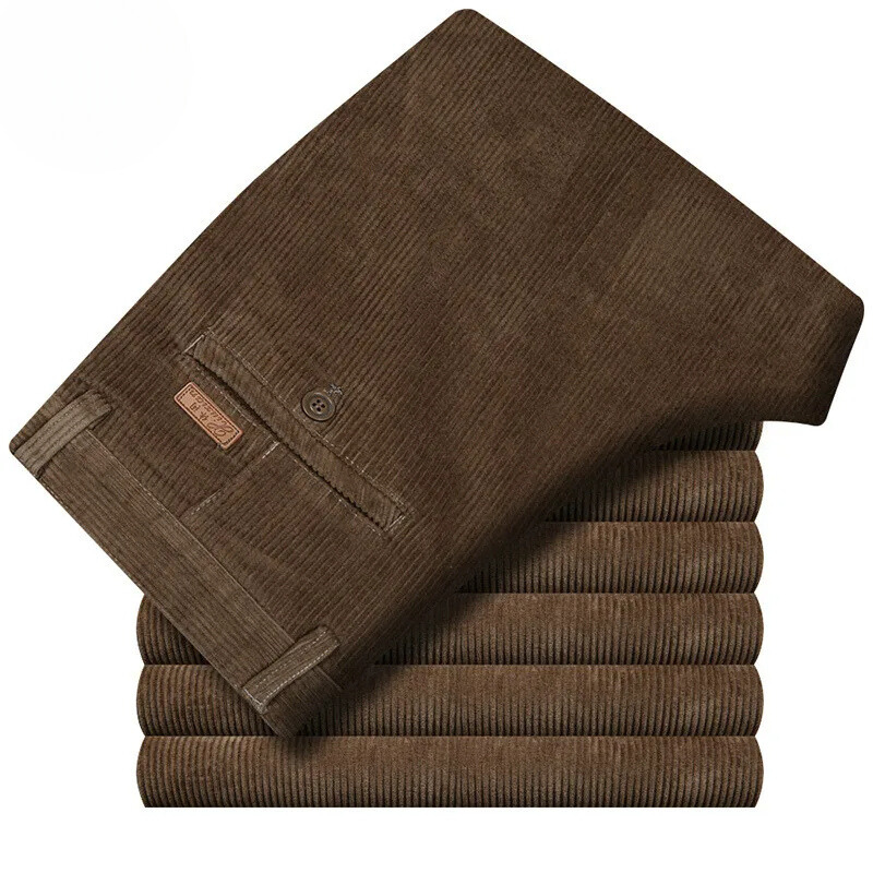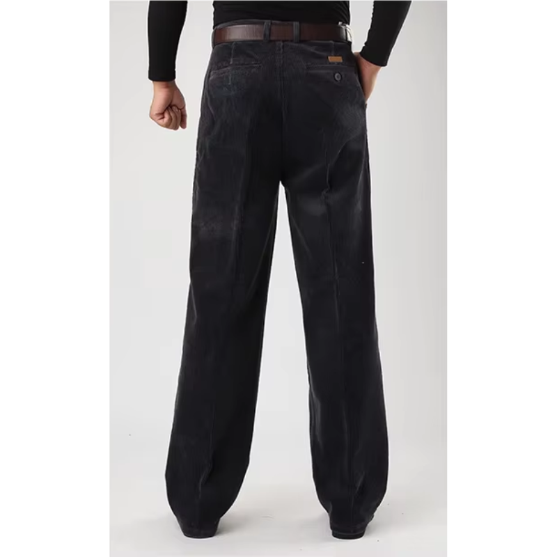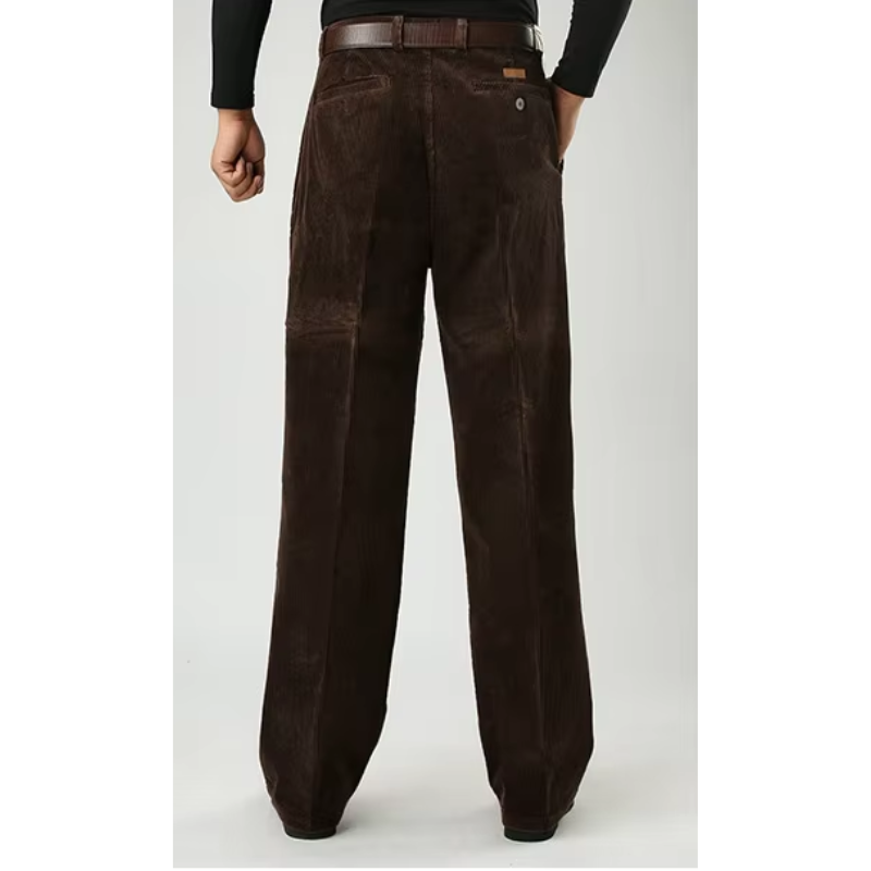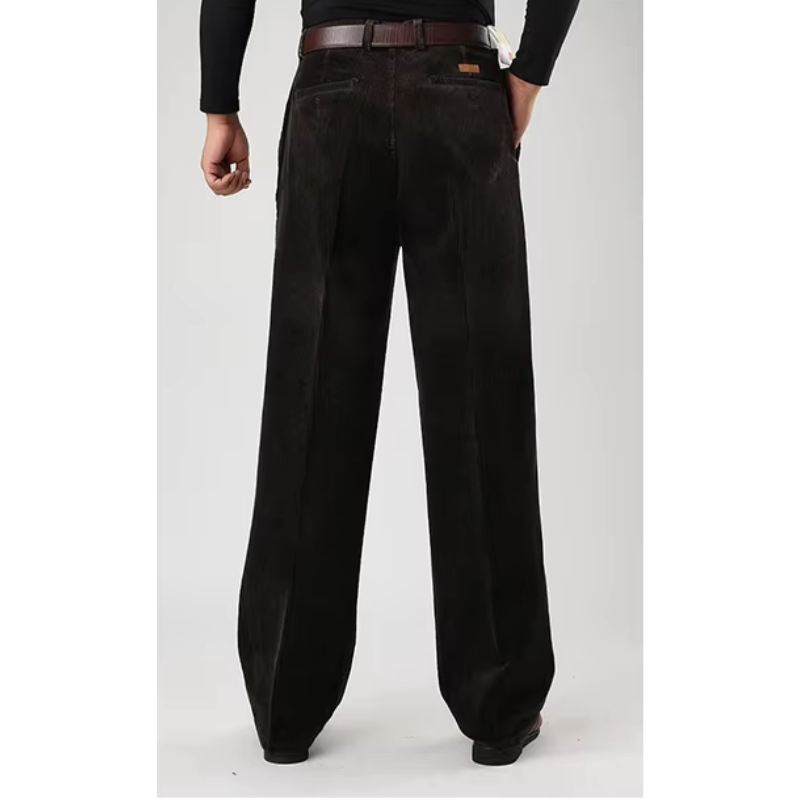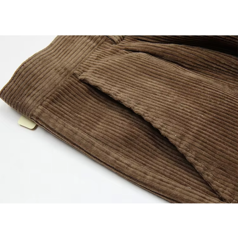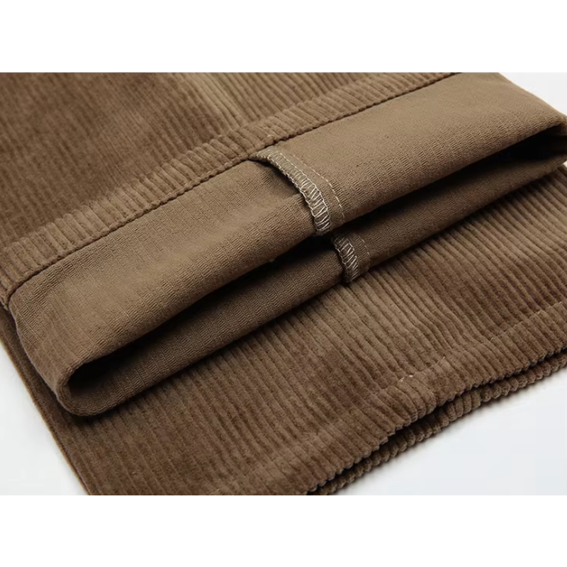 Bukserne fås i brune, mørkegrå, kaffefarvede og sorte nuancer, der nemt kan matches med forskellige outfits. Det klassiske design med brede ben tilbyder både komfort og bevægelsesfrihed, mens fløjlens ribbede tekstur tilføjer et strejf af vintage charme til dit look.